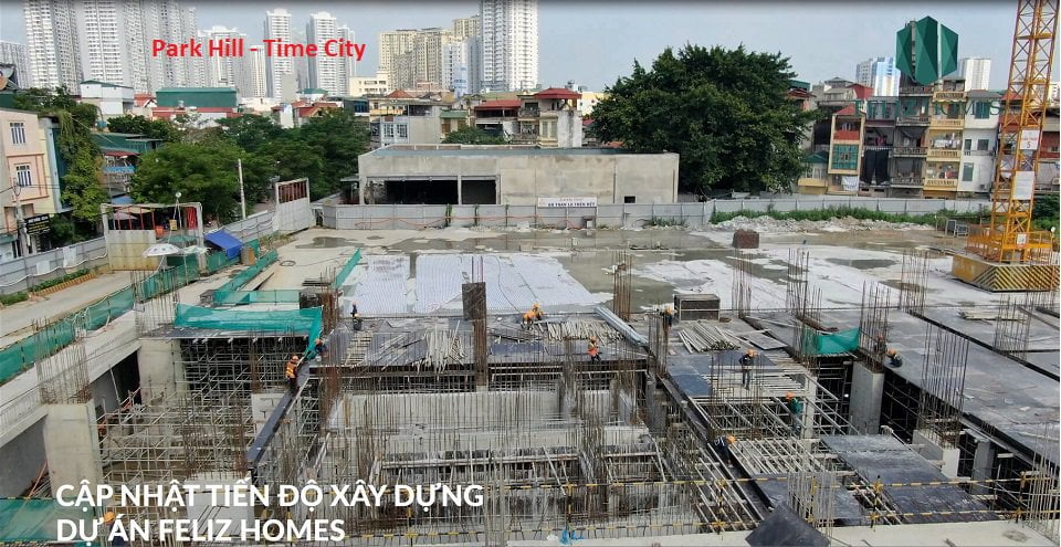 Cập nhật tiến độ thi công Feliz Homes mới nhất tháng 10/2020: Hiện tại đã xong phần xử lý nền móng, thi công xong móng bê tông cốt thép, đã xây dựng xong 3 tầng hầm và đang tiến hành thi công phần thân công trình.